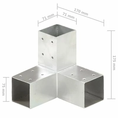Le connecteur électro-galvanisé permet de connecter facilement et de stabiliser les poutres. Tous les connecteurs sont pré-percés. Ce sabot pour poutres en bois est destiné à 3 poutres en bois carrées de 71 mm.